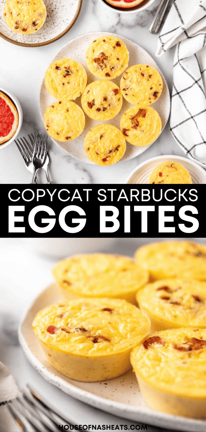 I’m all about making our restaurant and fast-food favorites at home. It saves money, I can customize or modify flavors to suit my family’s taste, and I know everything that goes into them. These copycat Starbucks egg bites taste even better than the drive-thru originals, cost way less, and keep breakfast ready all week. I seriously can eat these every day with half a grapefruit or a bagel and it is the best start to my morning.