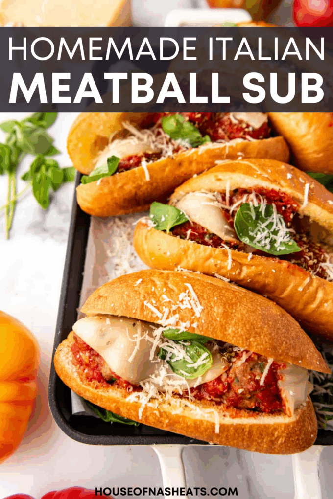 Reheat the meatballs and sauce in a saucepan or microwave until hot, then assemble and toast in the oven to re-crisp the rolls and melt the cheese. You can also reheat a fully assembled sandwich in the air fryer at 350°F for 4-5 minutes to warm it through and get the bread nice and toasty again.